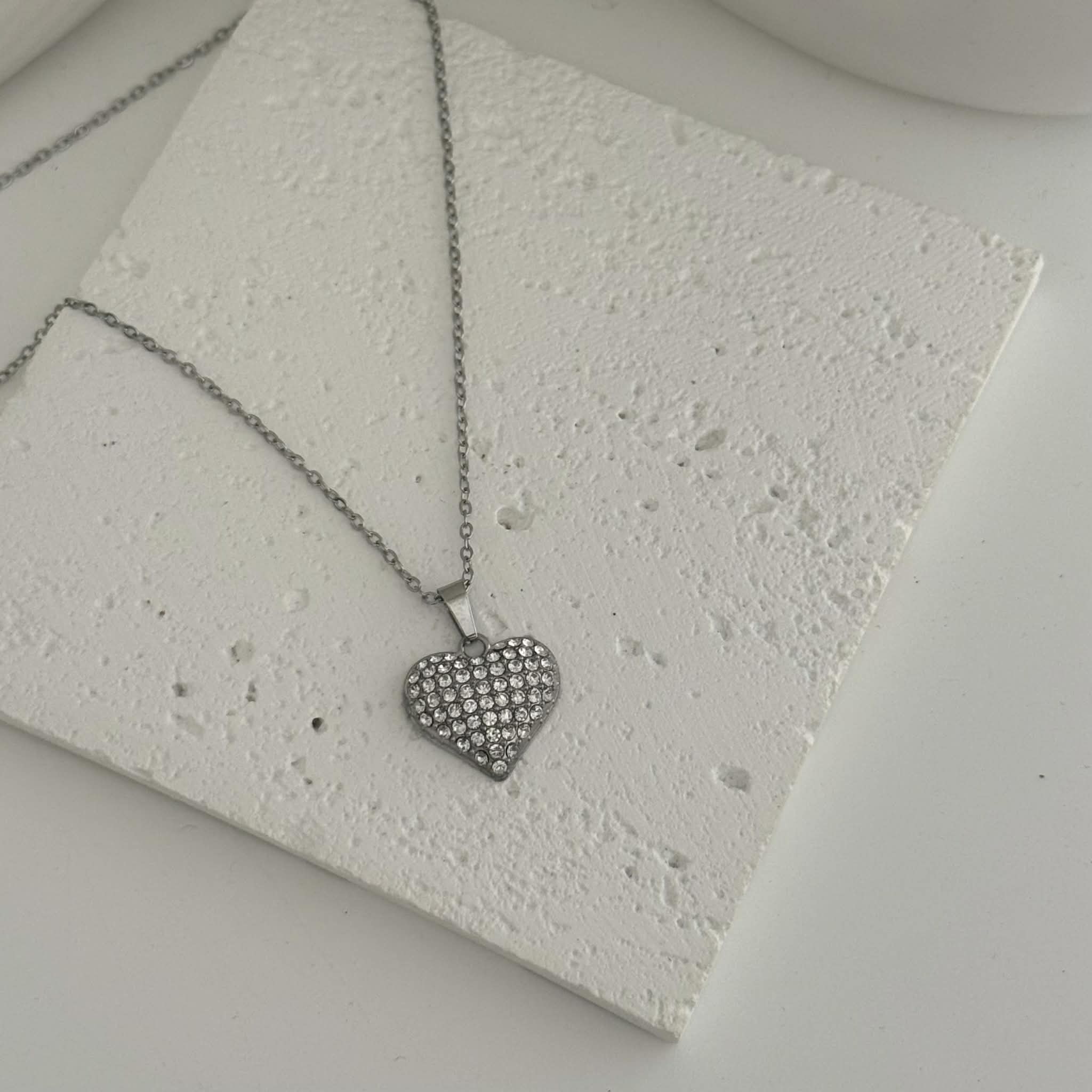 Αλυσίδα λαιμού από ανοξείδωτο ατσάλι με καρδιά από ζιρκόν.