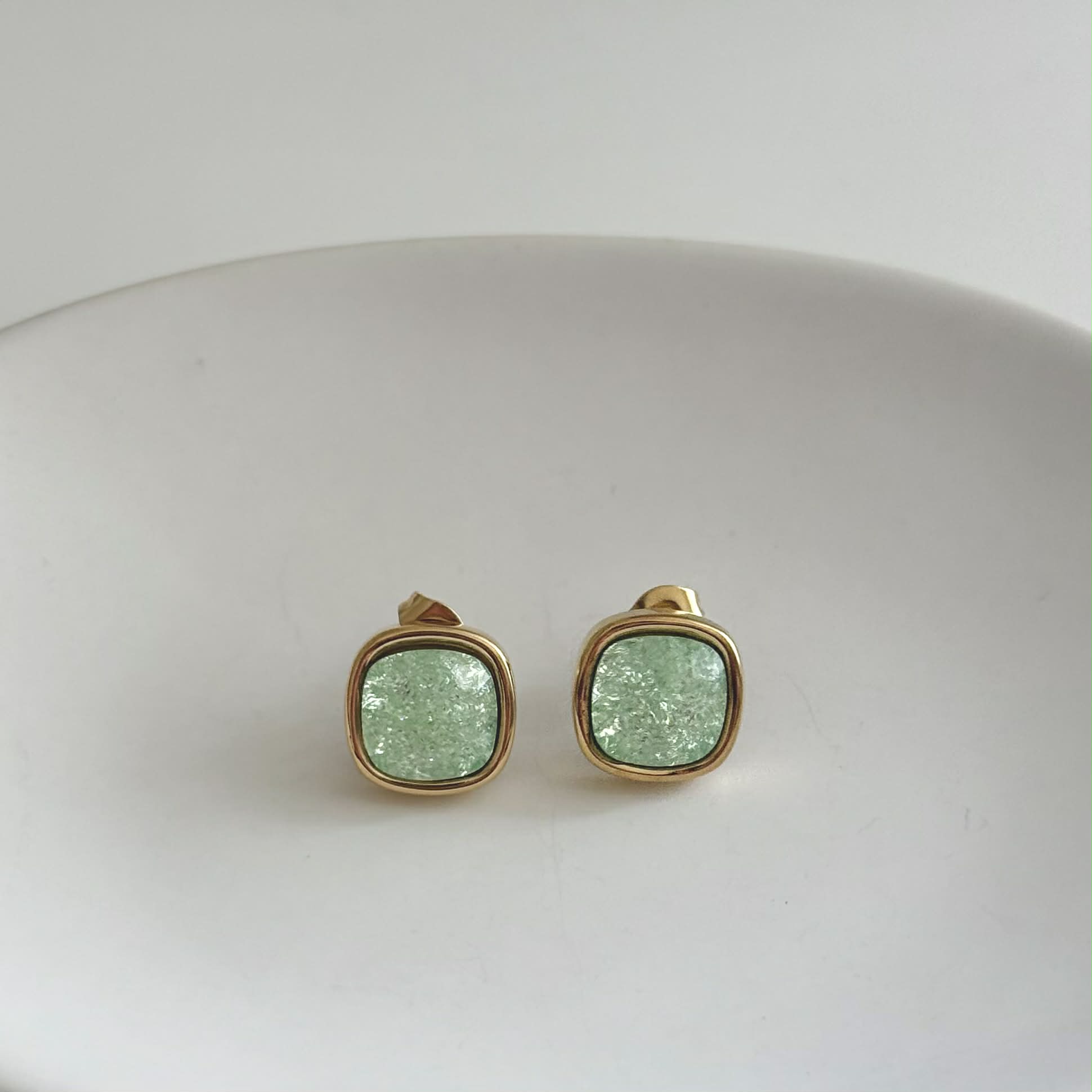 Ατσάλινα σκουλαρίκια καρδούλες με πράσινη πέτρα και καρφάκι στο κούμπωμα.
