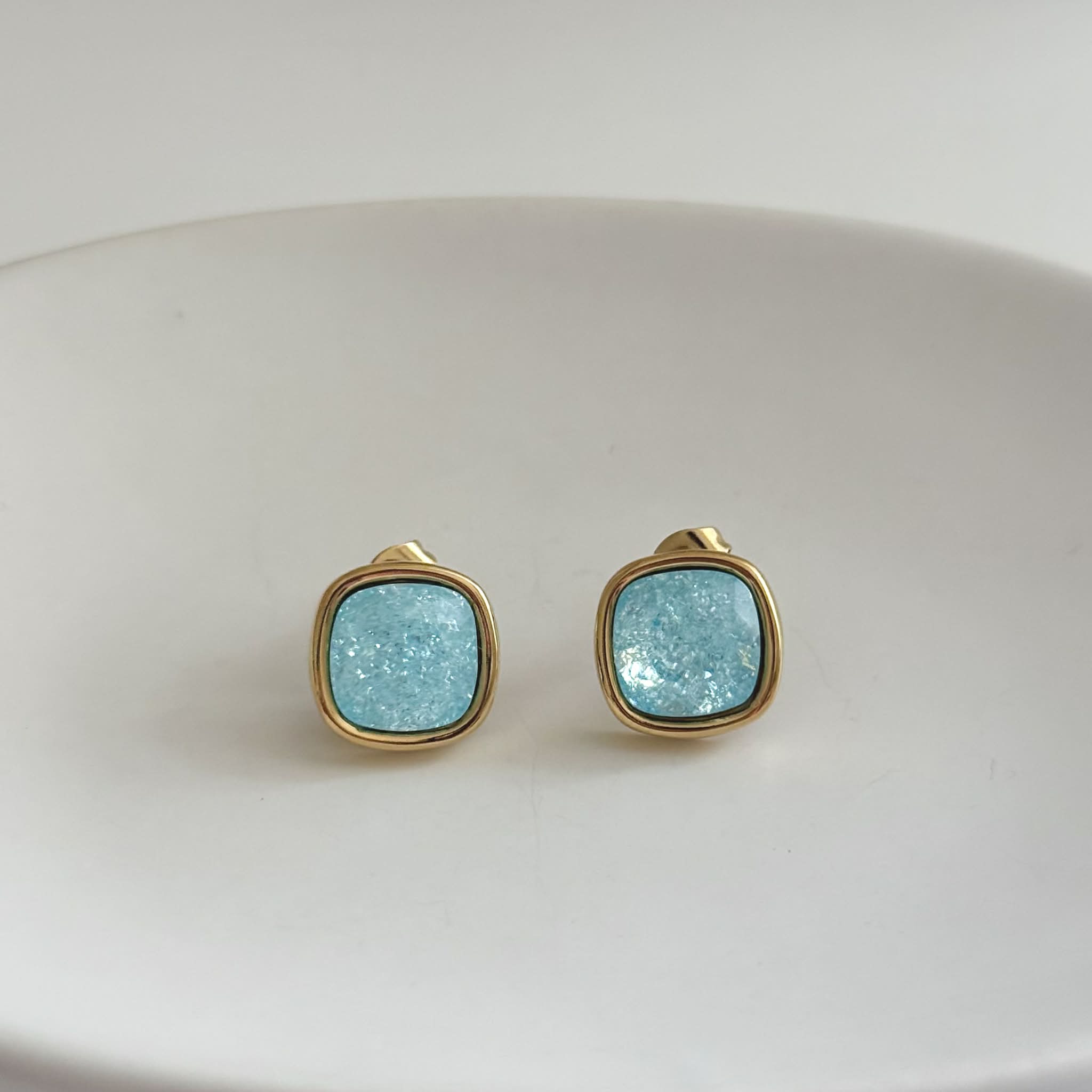 Ανοξείδωτο ατσάλι σκουλαρίκια μίνι με λευκή πέτρα ιριδίζον. Κούμπωμα με καρφάκι.